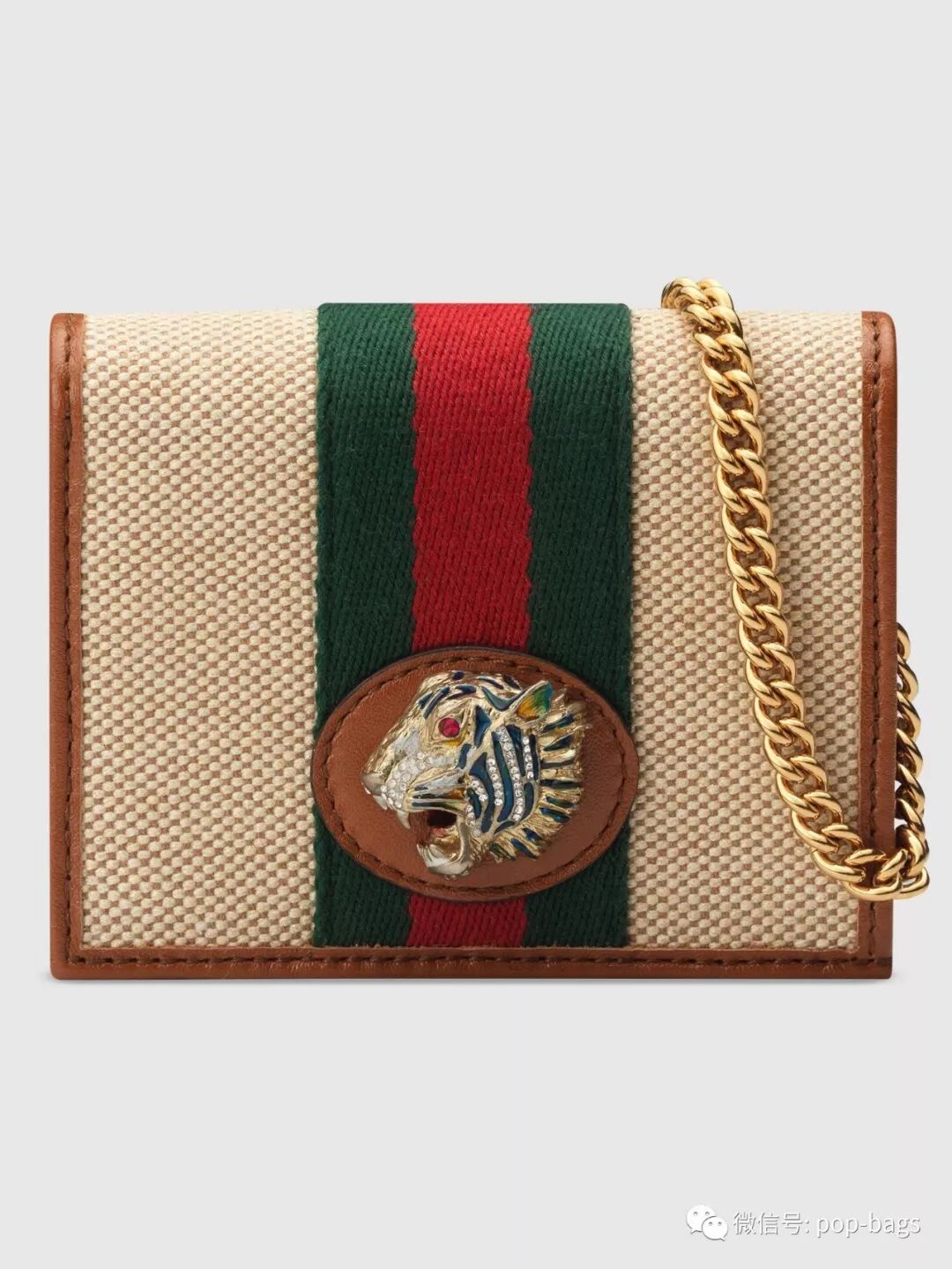Rajah系列风格复古的托特包采用天然帆布打造,并搭配有白兰地棕色皮革饰边,饰以水晶咆哮虎头金属配件。此种面料同时也应用于多款手袋、手拿包和收纳盒等设计,饰有经典绿-红-绿织带细节、白兰地棕色皮革饰边搭配标志性金属双G标识,为初夏简约中不失质感的搭配首选。