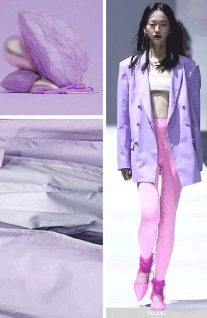柔和的浅紫色将成为贯穿市场的最新关键色,这是从人气粉色过渡到紫色新时代的温和色彩。运用在面料织物上显得优雅,梦幻而又甜美。